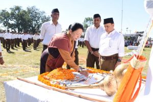 धर्मशाला: 12 अक्टूबर 2025 को, राष्ट्रीय स्वयंसेवक संघ (आरएसएस) ने विजयादशमी पर अपने शताब्दी वर्ष के भव्य समारोह के साथ एक ऐतिहासिक उपलब्धि हासिल की। ​​यह निस्वार्थ सेवा, सांस्कृतिक जागरण और राष्ट्रीय एकता के 100 वर्षों का स्मरणोत्सव है। इस दिन का मुख्य आकर्षण मुख्य अतिथि के रूप में कार्यवाहक सिक्योंग, कालोन डोलमा ग्यारी की उपस्थिति रही।